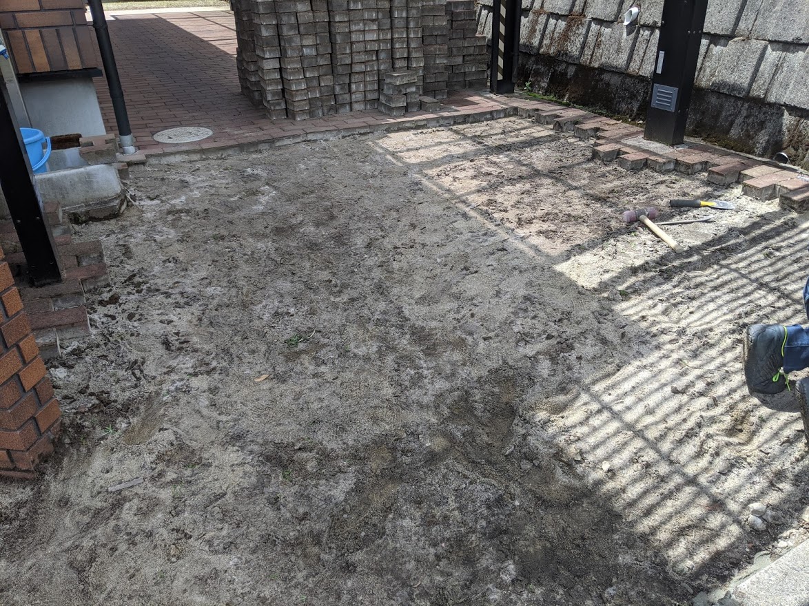 まずは既存のインターロッキングを外し地面の高さを調整します。