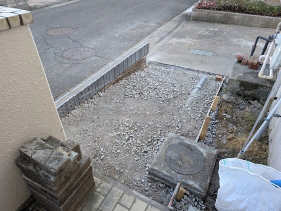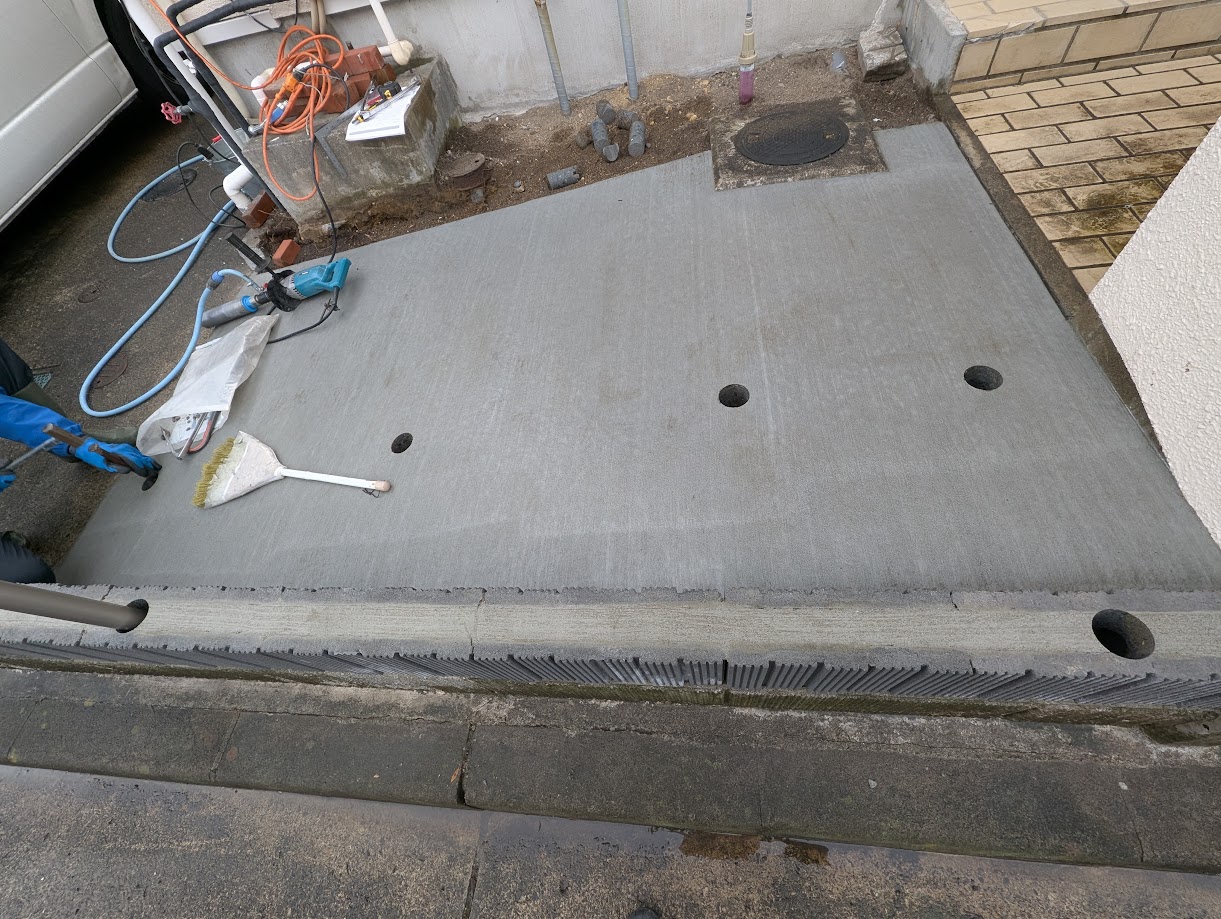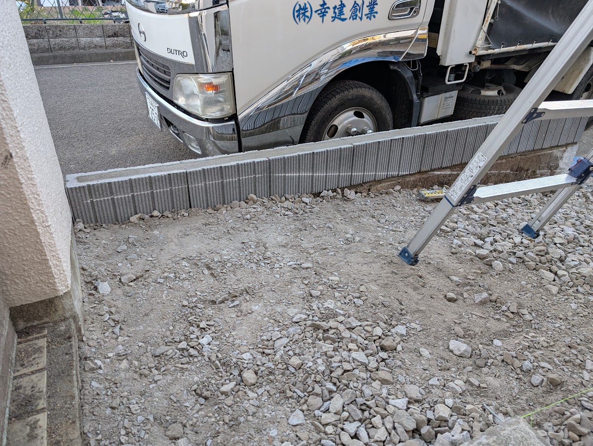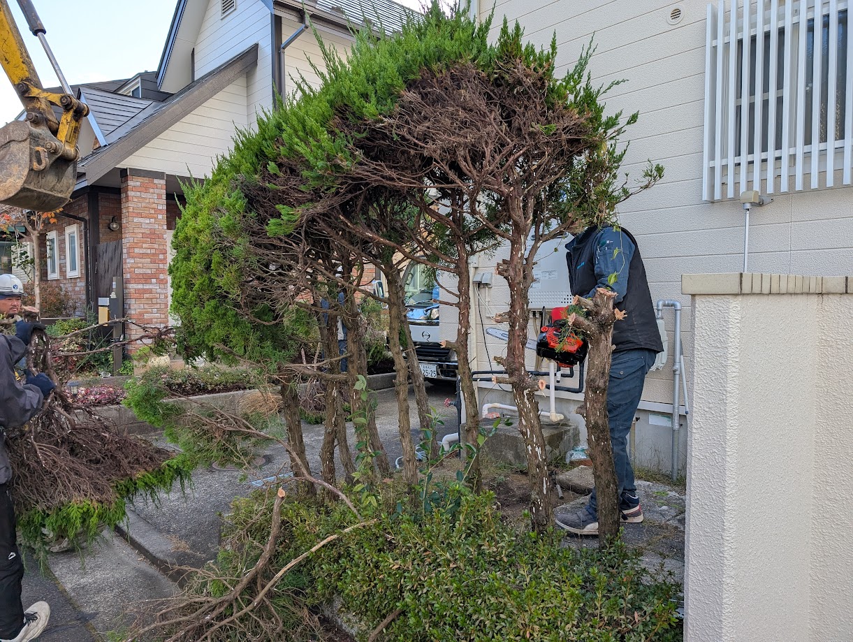 玄関わきから駐車場にスロープでつなげるために植栽を撤去しています。浴室の解体工事と抱き合わせにして費用を調整しました。