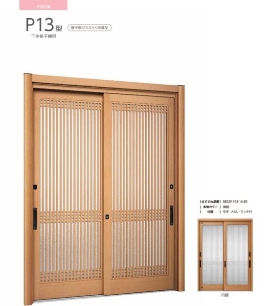 LIXIL リシェント玄関引き戸 P13型 欄間付(格子タイプ)