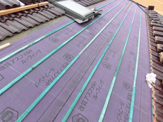 新しい防水シートと桟木(樹脂製)を設置します。