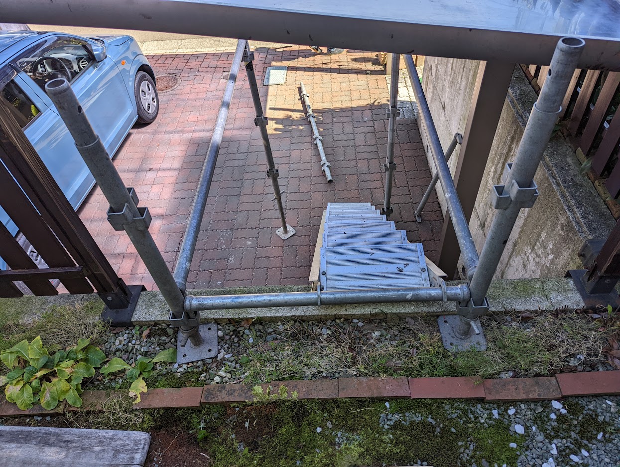 3~4日ほど階段が使えなくなりますので、仮設で階段を組み立てます。
