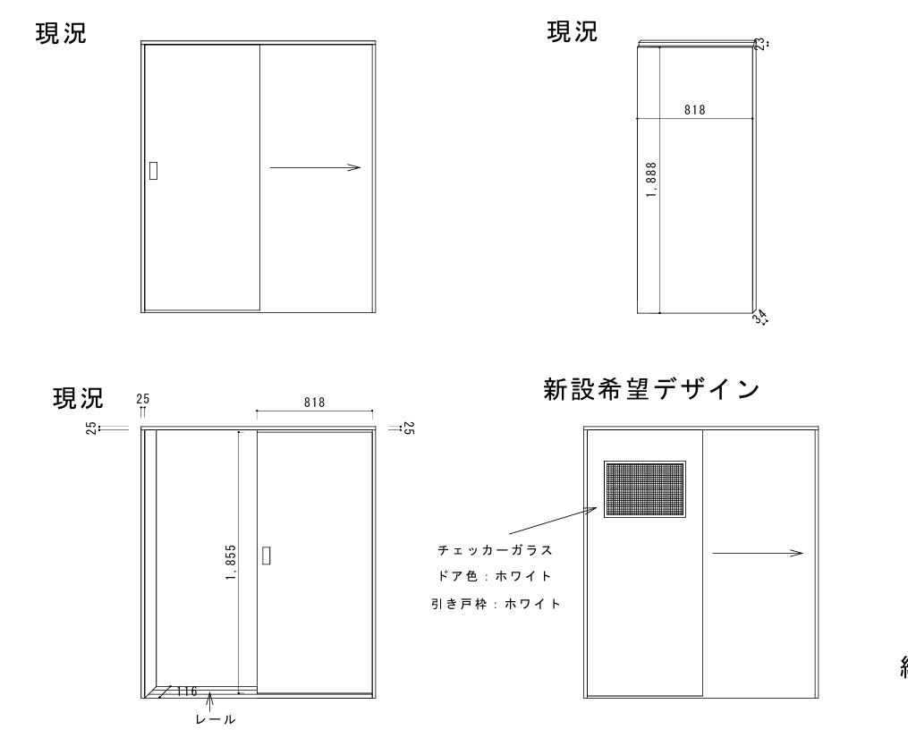 大きめのチェッカーガラスが入った引き戸をご提案させていただきました!
