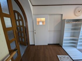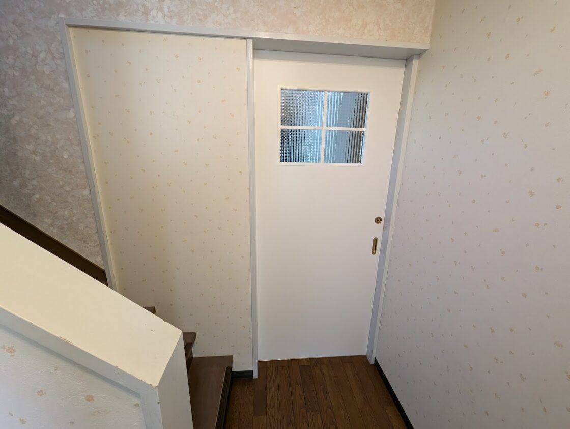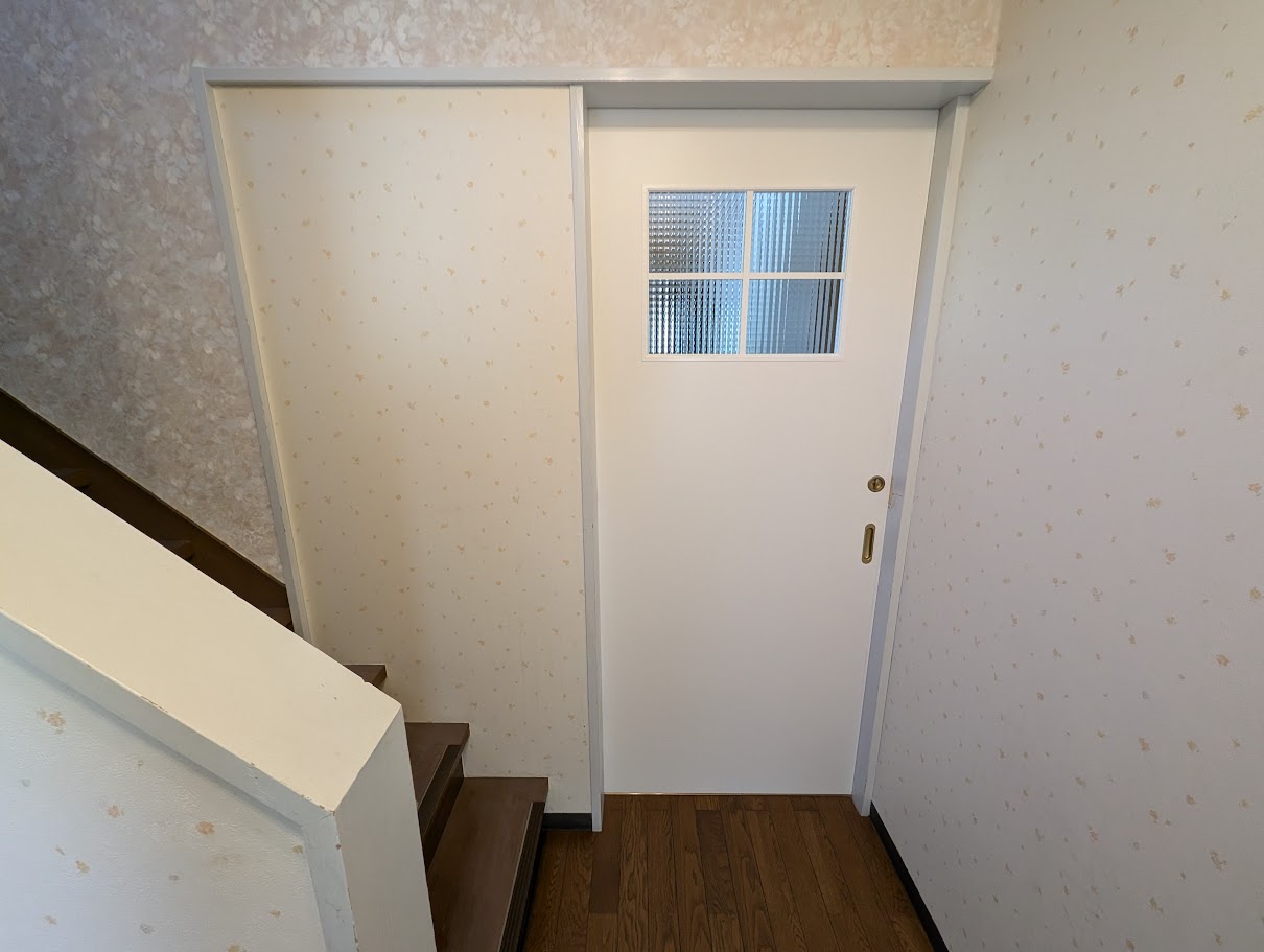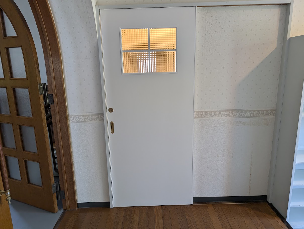 うごきづらくなってきたシンプルな引き戸をかわいい雰囲気のドアにしたいとのご要望でした。