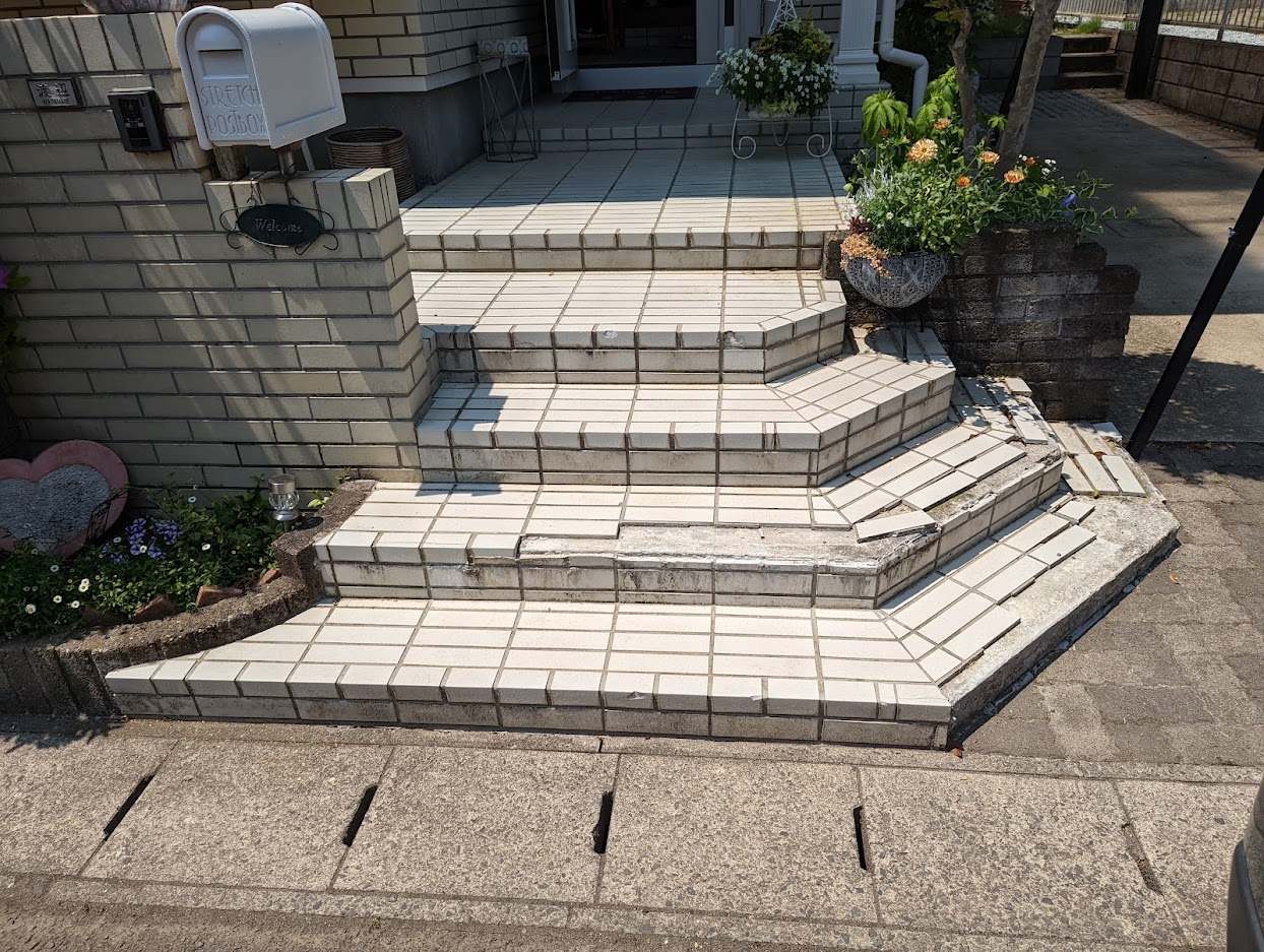 3枚目は使用道路から玄関に向かった画像です、目地がスッキリ見えますよね?