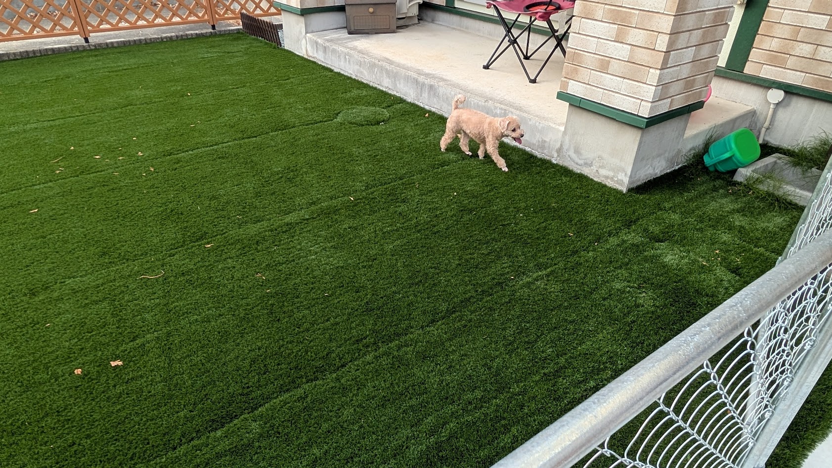 ワンちゃんも人工芝に慣れてくれて2か月後には元気に走って遊んでる姿を見ることができました!!