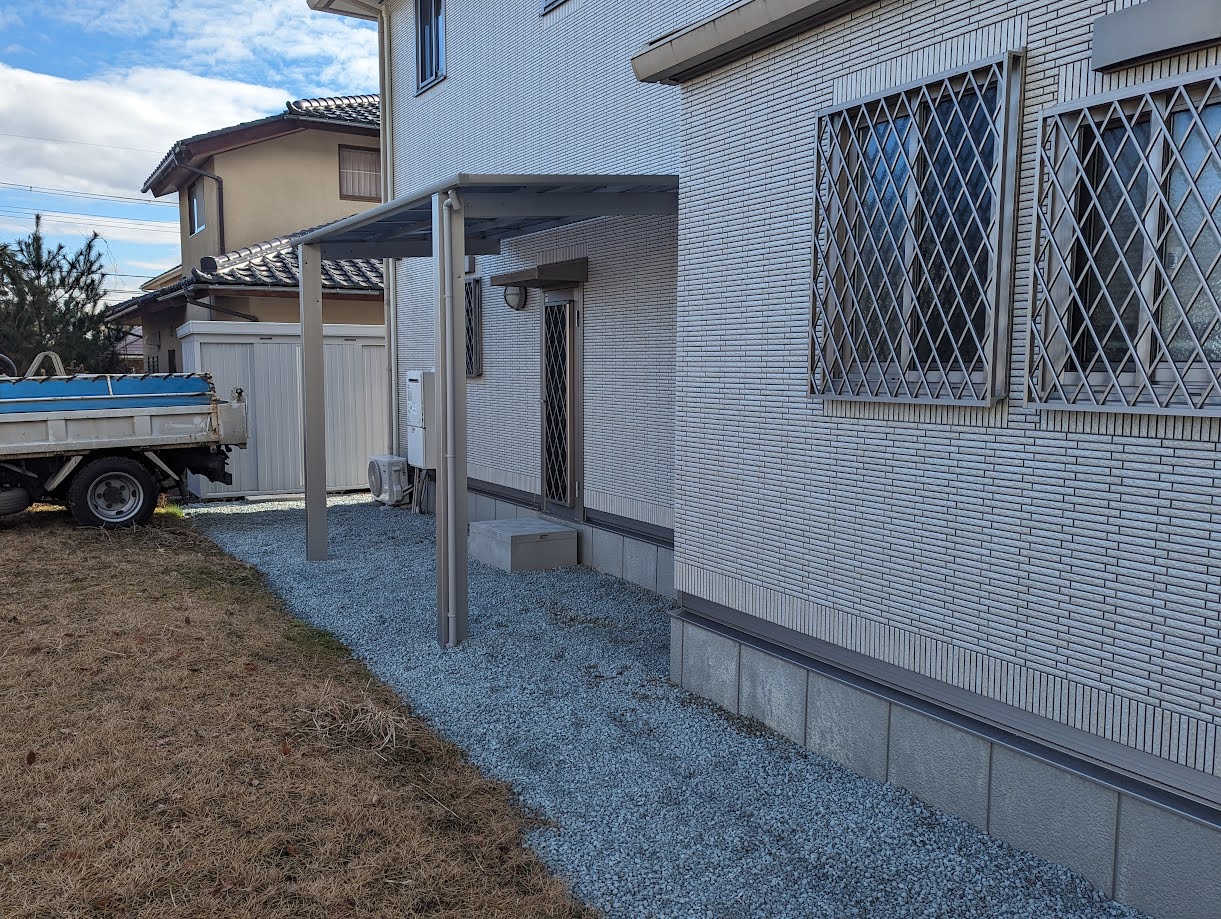 勝手口にテラス屋根も設置しました。