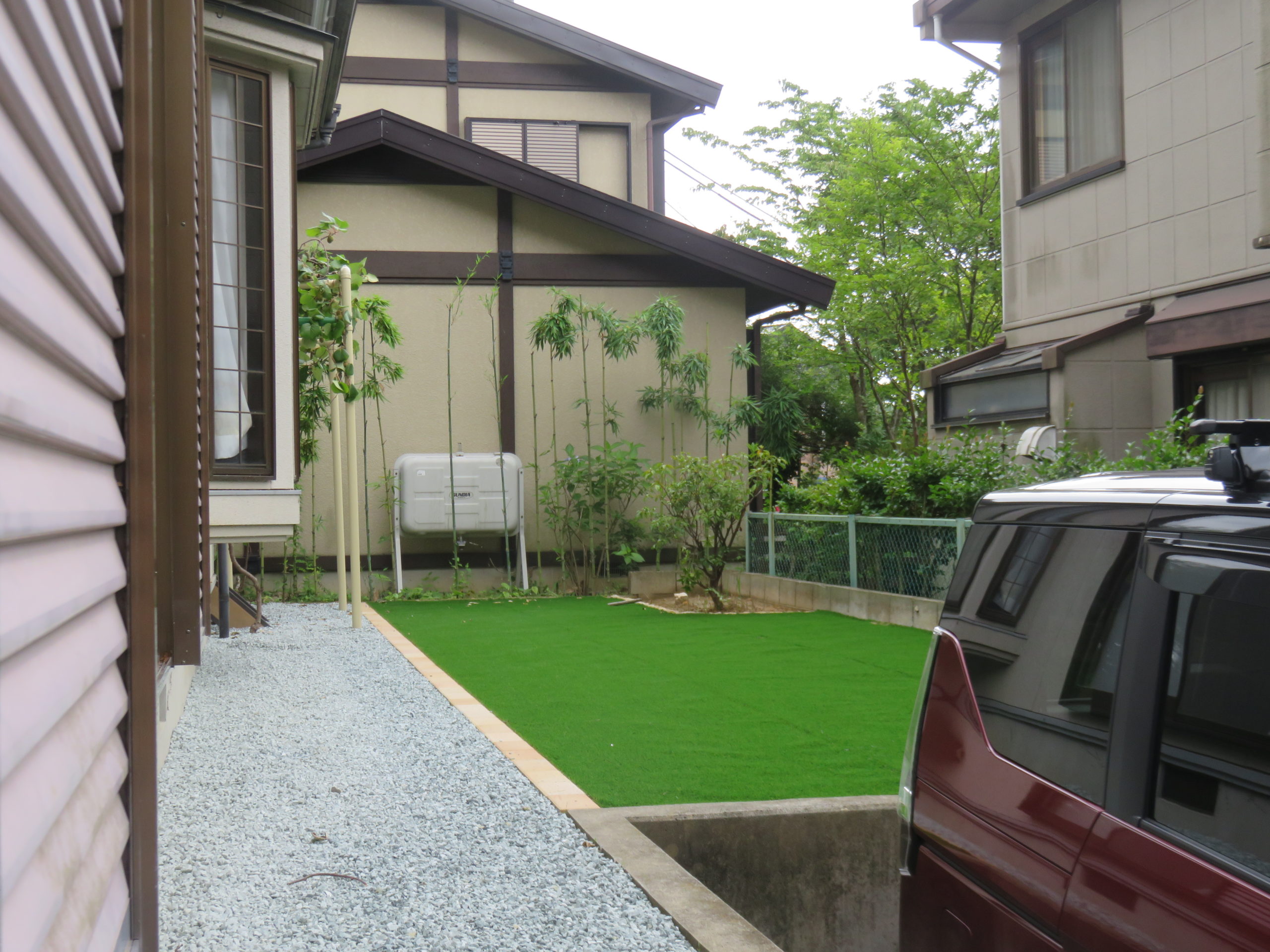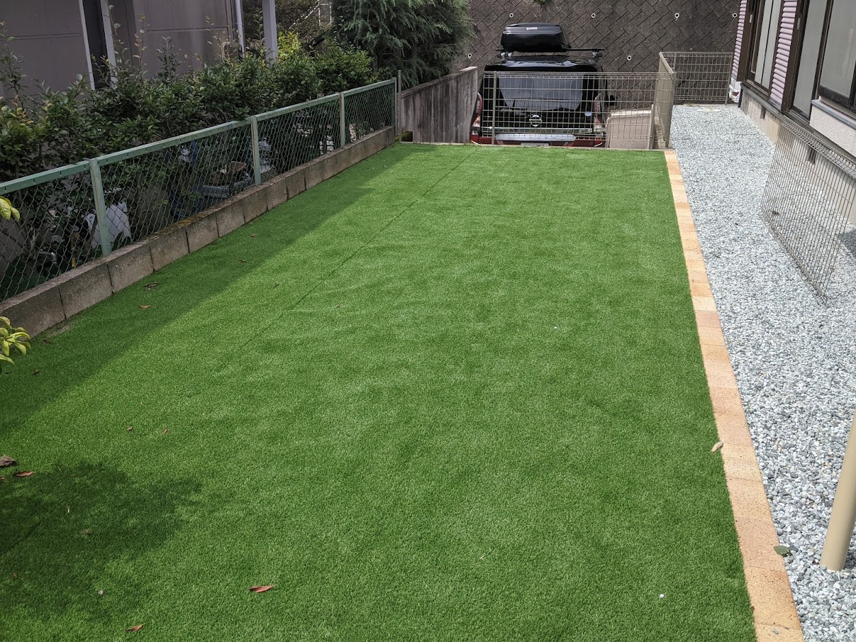 お手入れが大変だったお庭でお子さんが遊べるようになりました