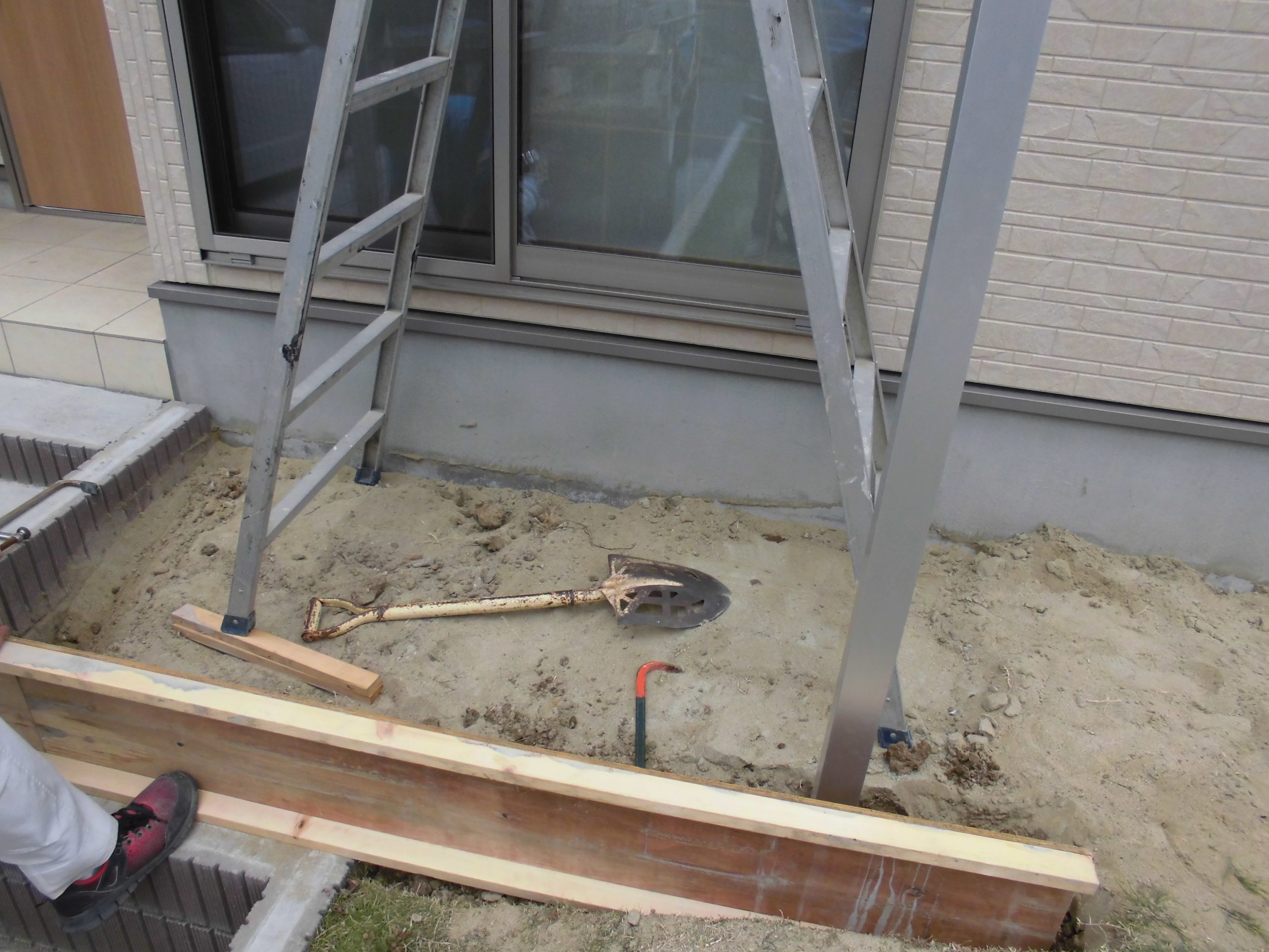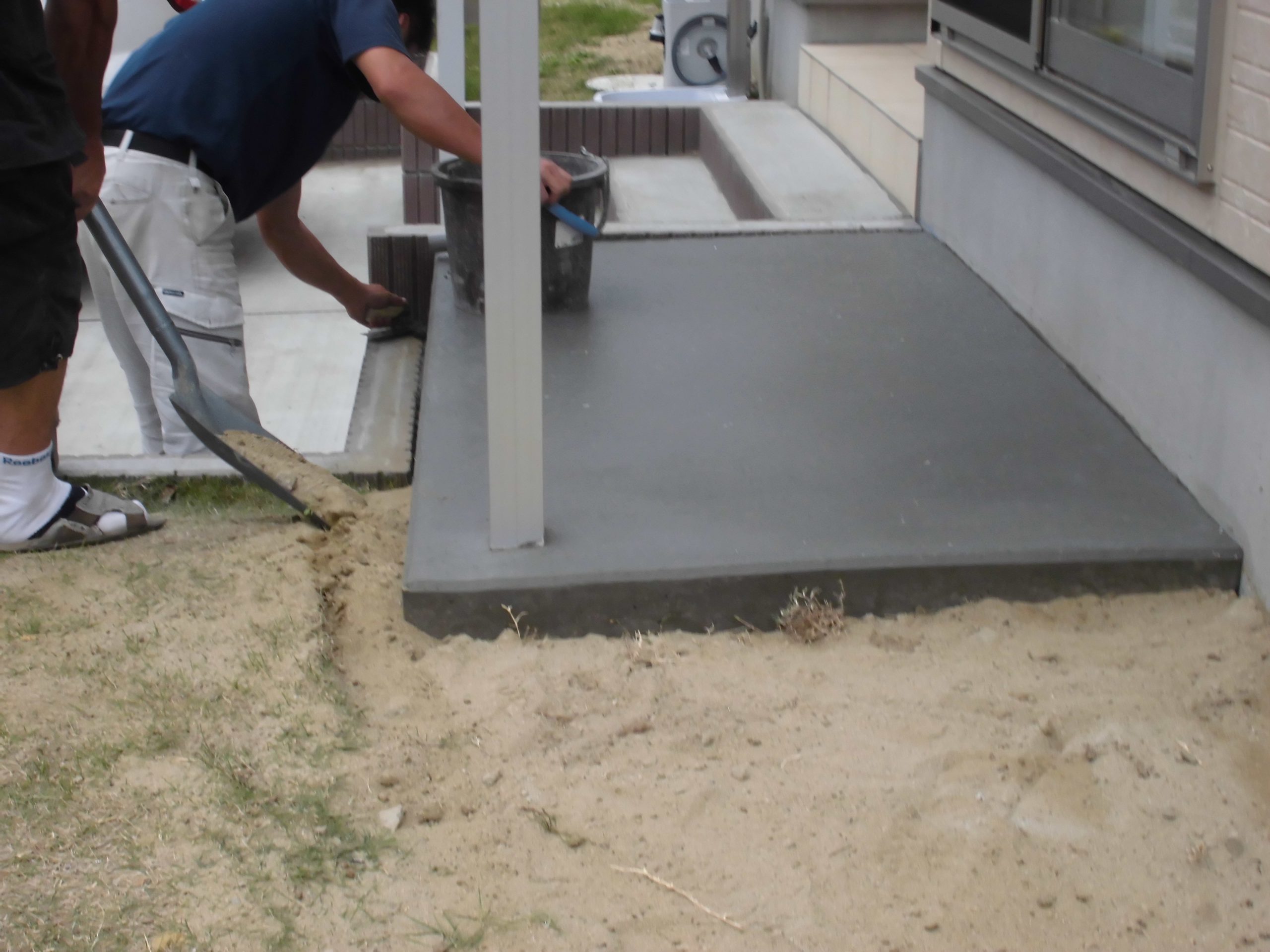 太白区にて新規のご依頼をいただきました。テラスの設置と土間の打設です。