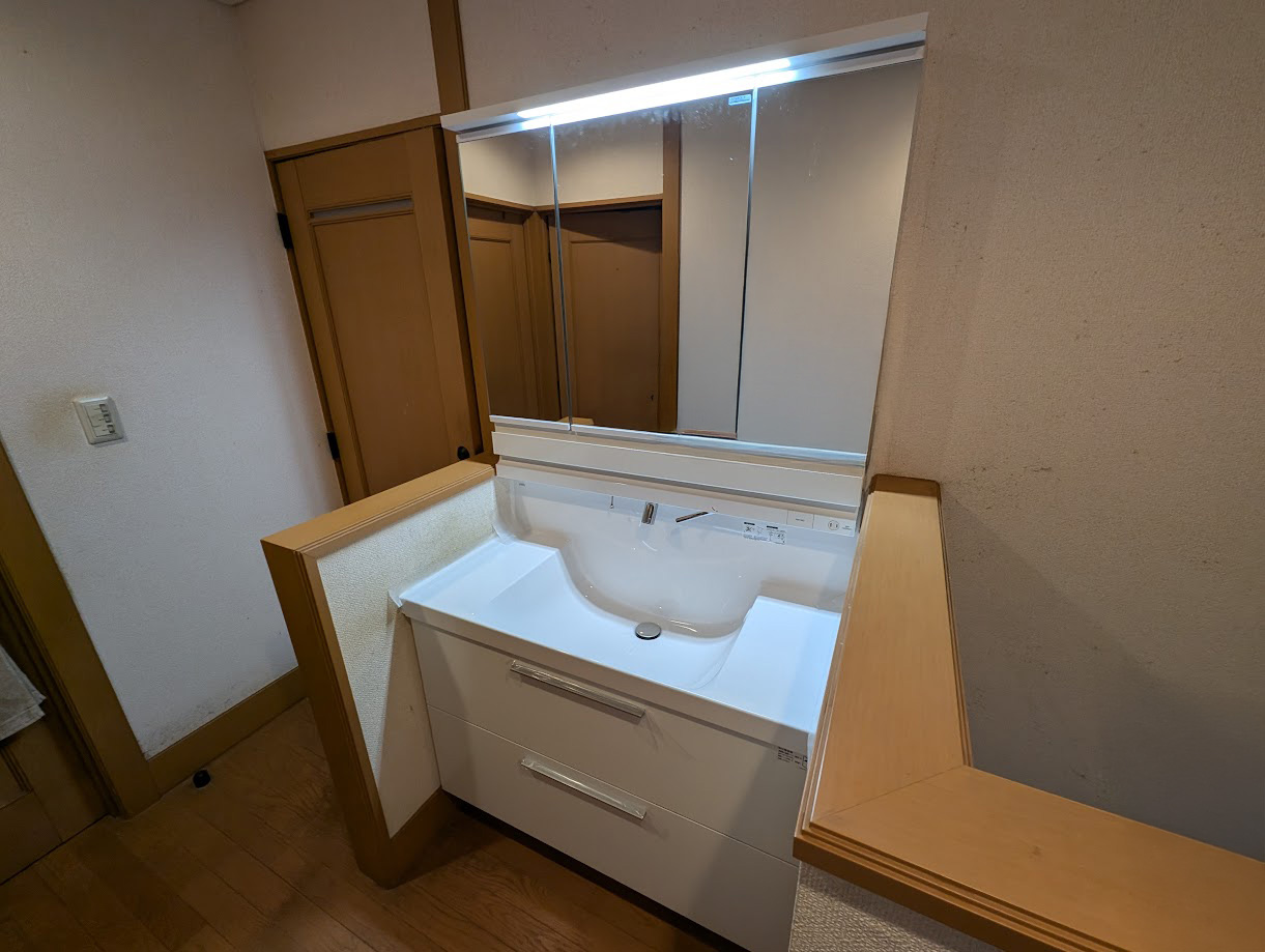 洗面化粧台は既存のスペースを最大元に活かしてサイズを大きいものにしました。