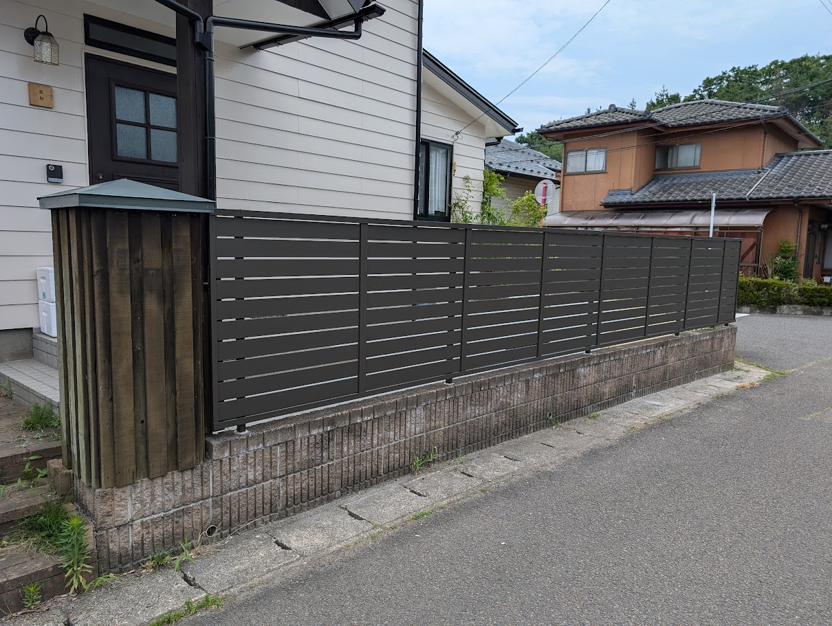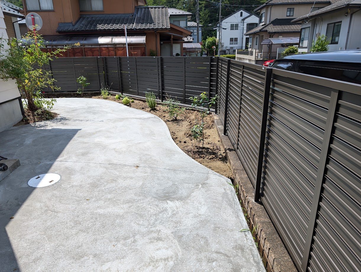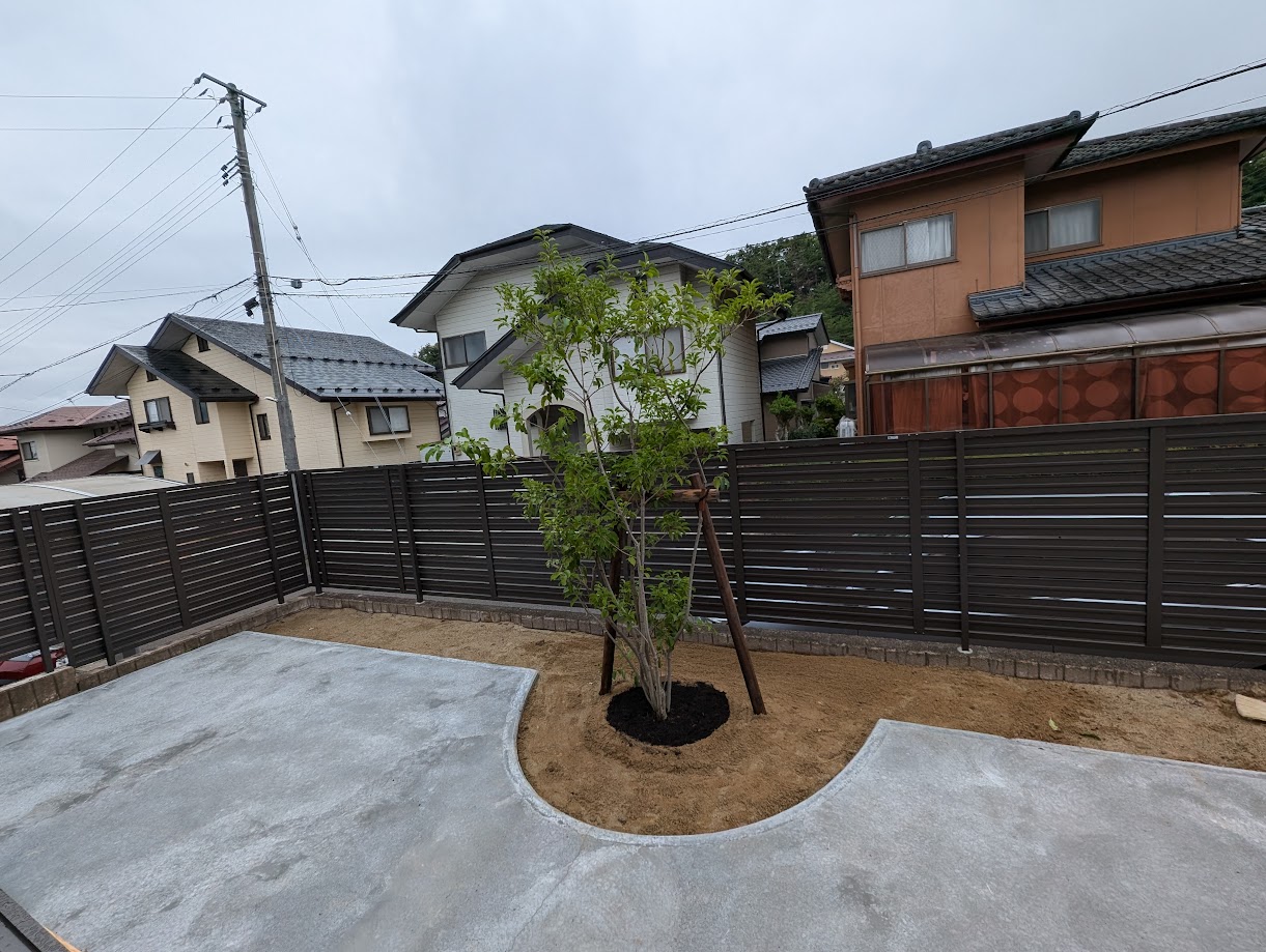 樹木での目隠しからフェンスを取り付けてより見た目がすっきりし、お手入れの手間もなくなりました。