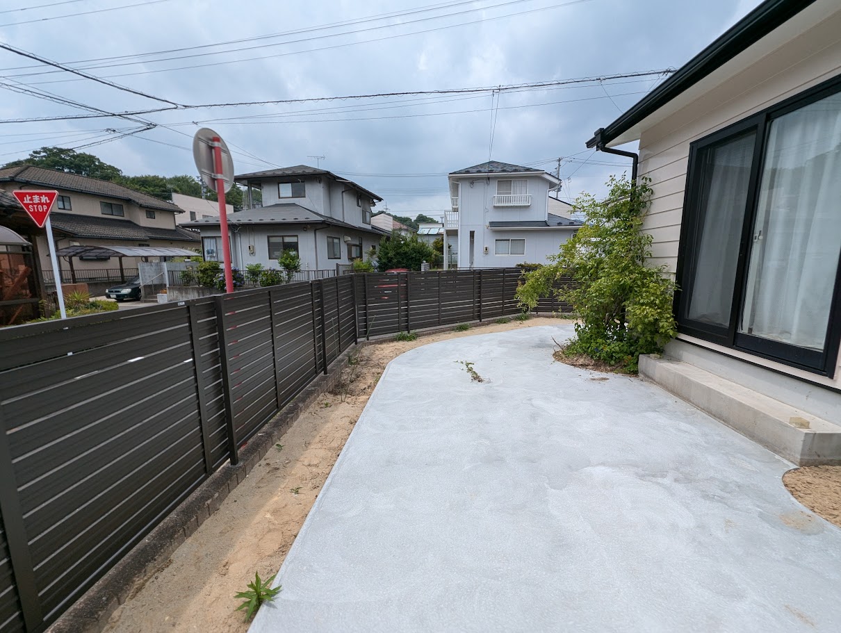 - 工事名コンクリート舗装、フェンス設置工事、植樹、浴室リフォーム
