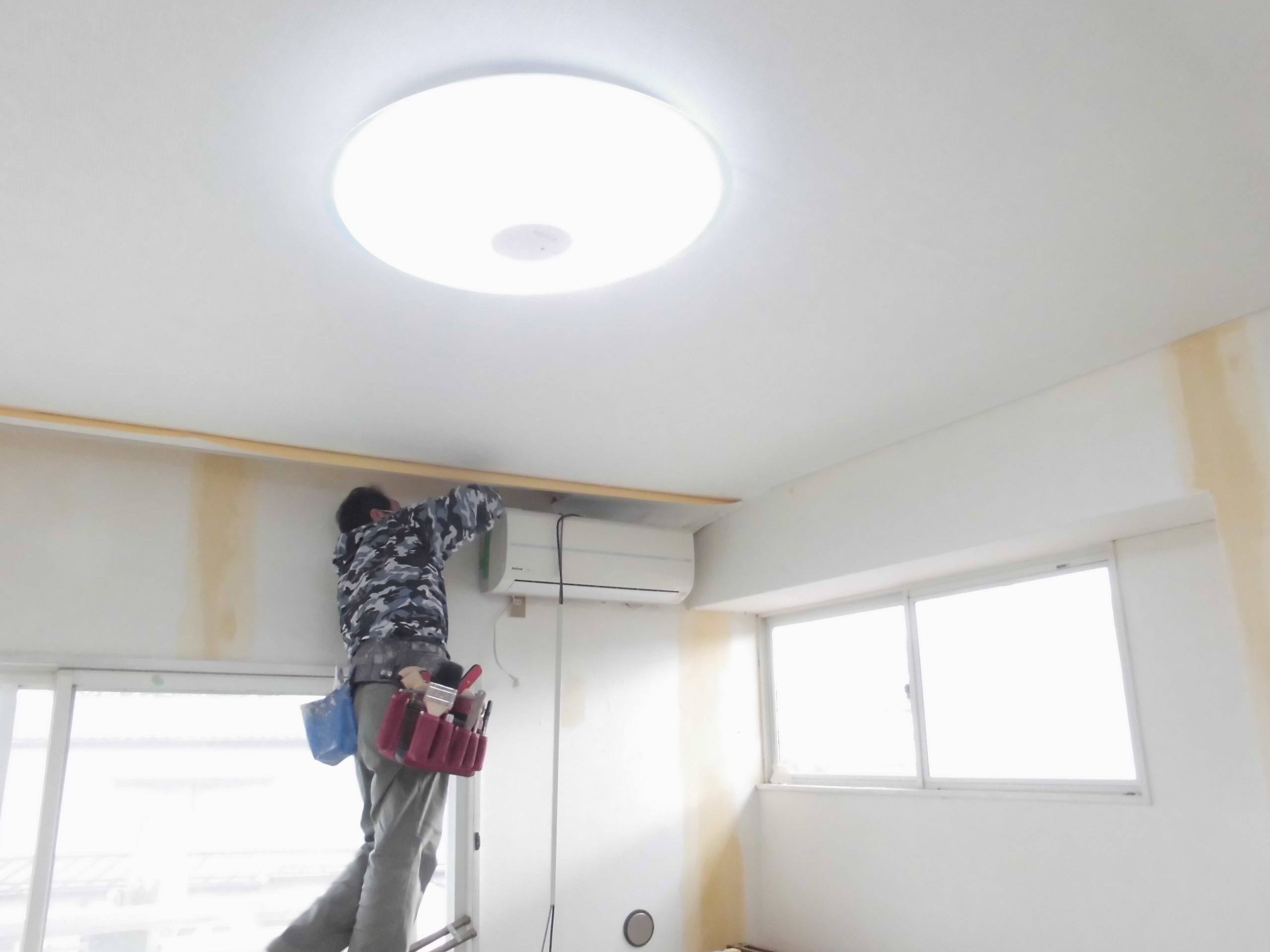 壁紙撤去、パテ処理