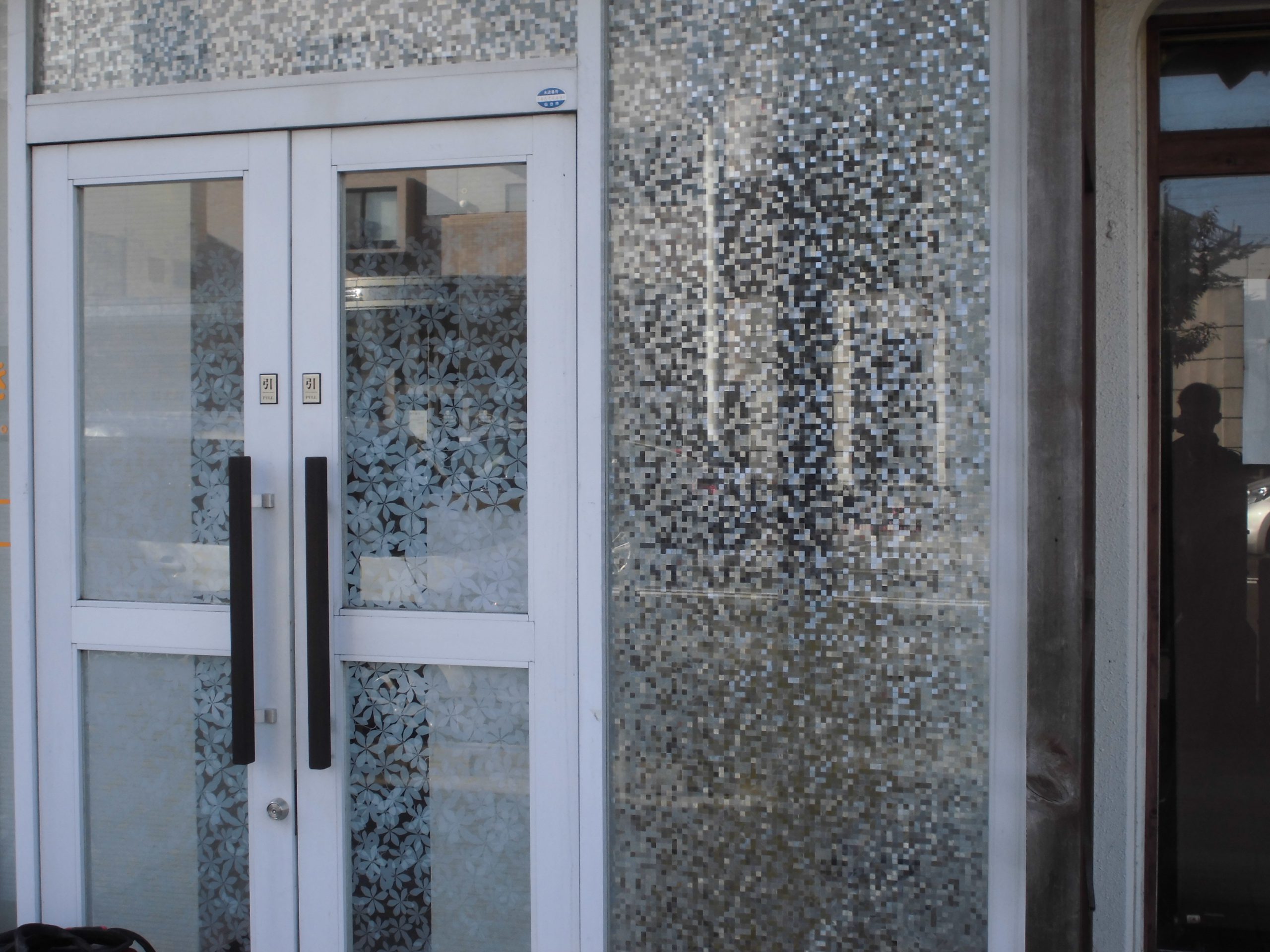 お花とモザイクのフィルムを張ります