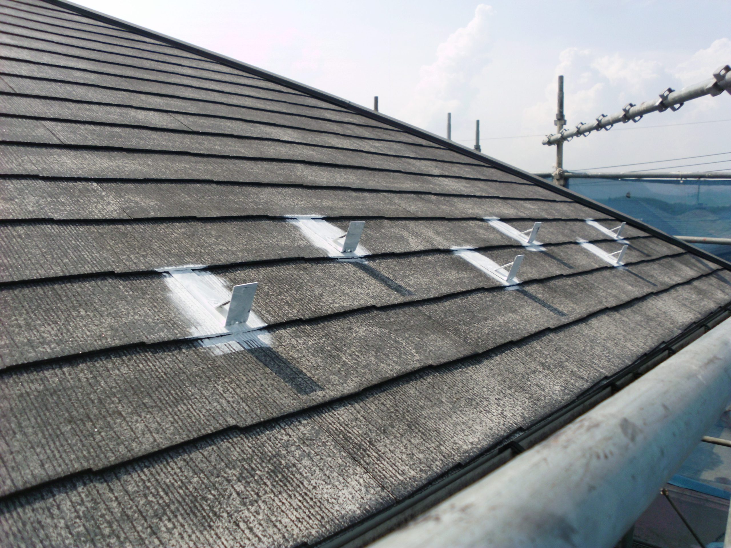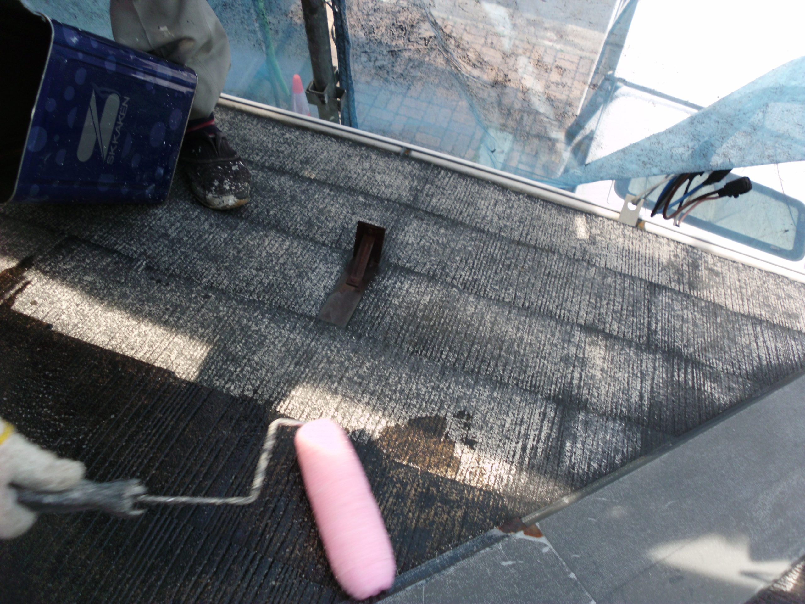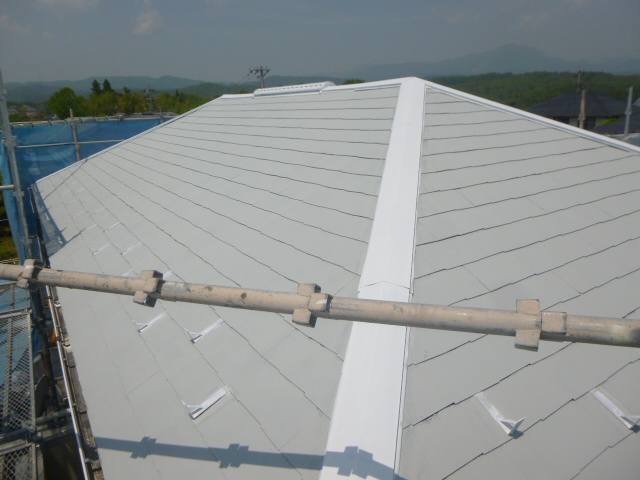 仙台市泉区で新規のご依頼をいただきました。今回は関西ペイントさんが推奨する【よみがえり工法】という屋根の下塗り材にルーフフィラーを塗布する工法を採用させていただきました。
