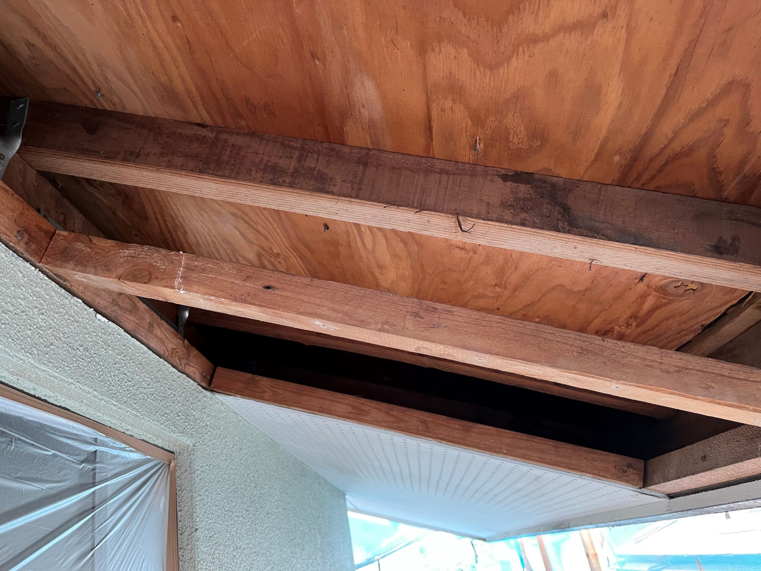 軒天の腐食した個所を交換したり。幸い下地は腐ってないませんでしたのでケイカル板の張替えで済みました。