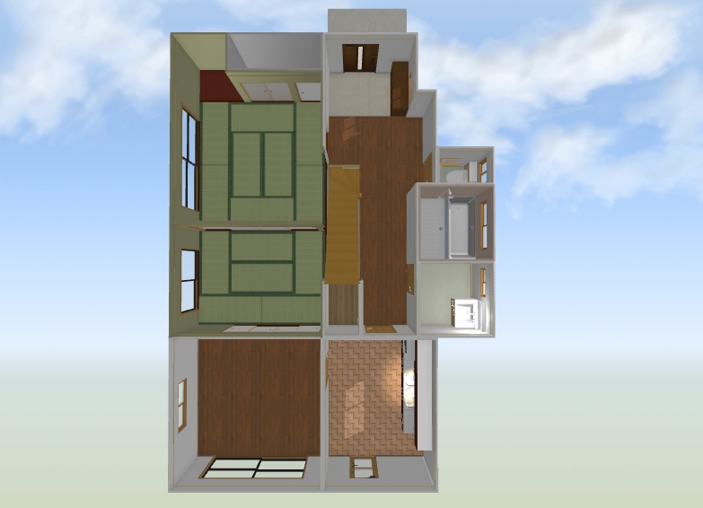 和室、リビング、キッチンを繋げて20畳のLDKに変更いたしました。