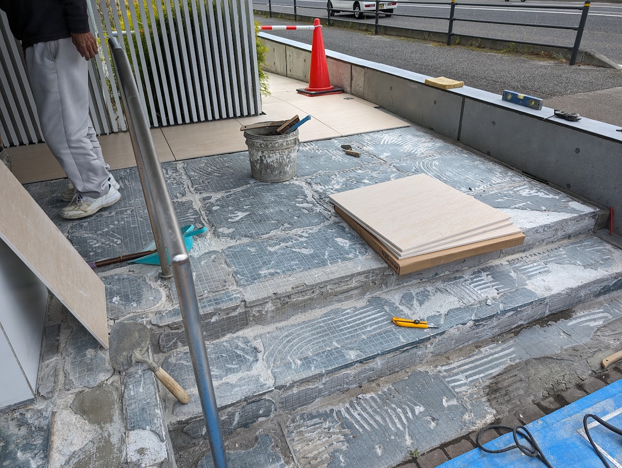 今回はショールームになる入口の大判タイル600角の張替えです。