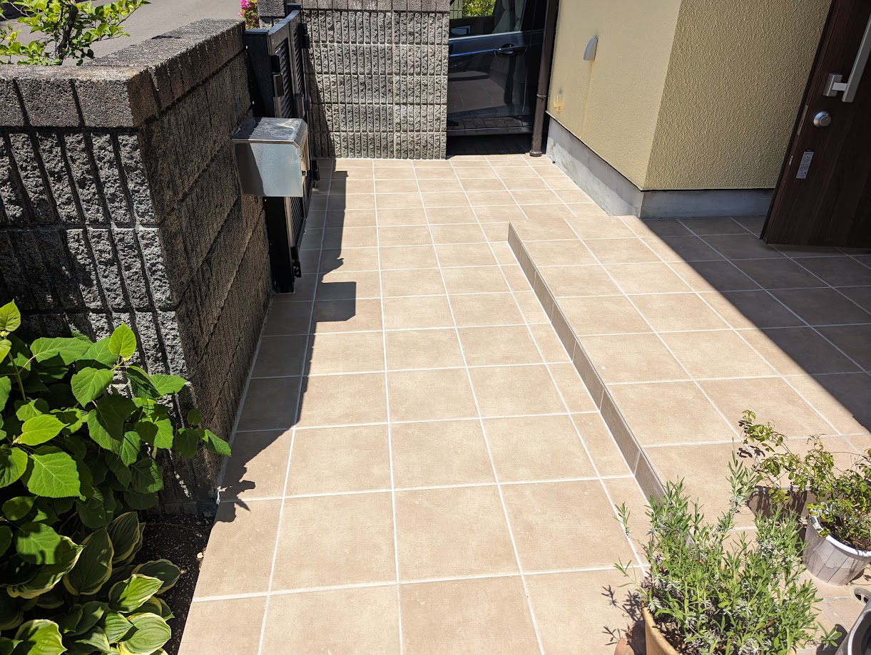 雨水が溜まらないように下地で勾配を調整しながら、もちろん見た目も美しく仕上げました。