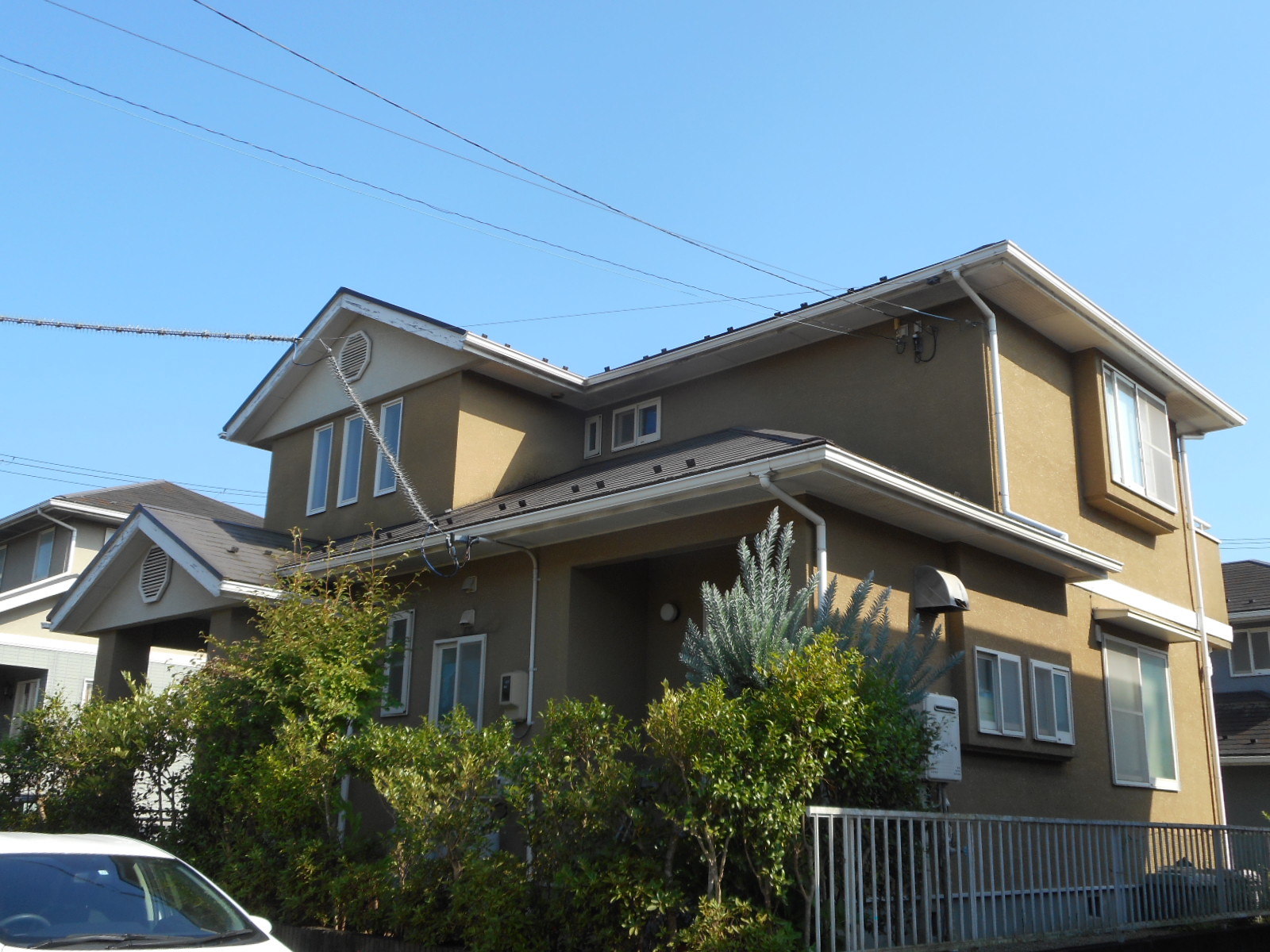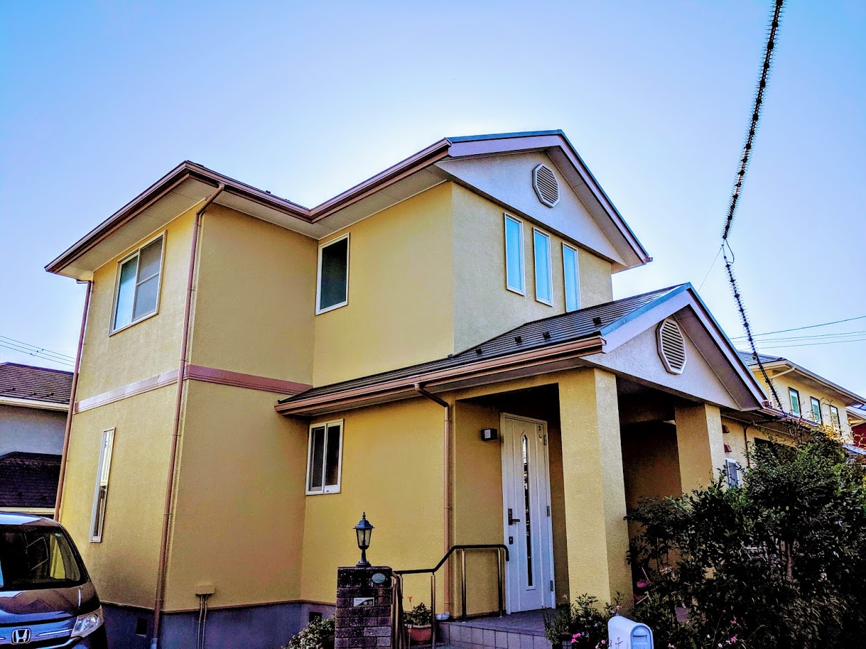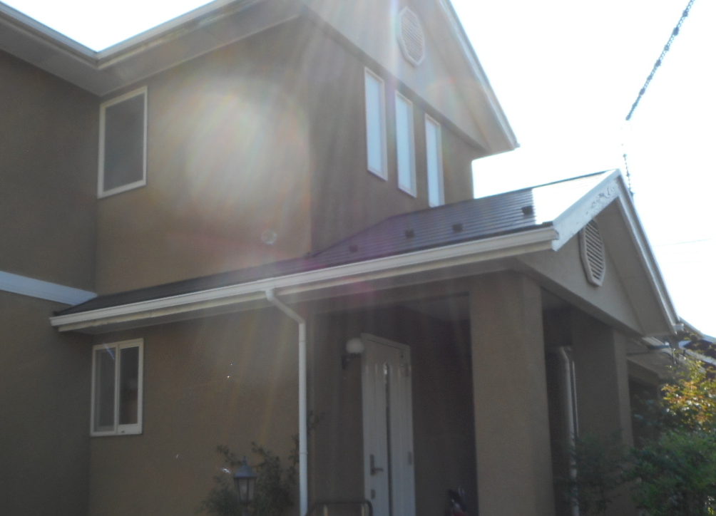 ハイブリッド樹脂での塗装完成。2F雨樋、フードカーバー等の破損部も交換完成です。