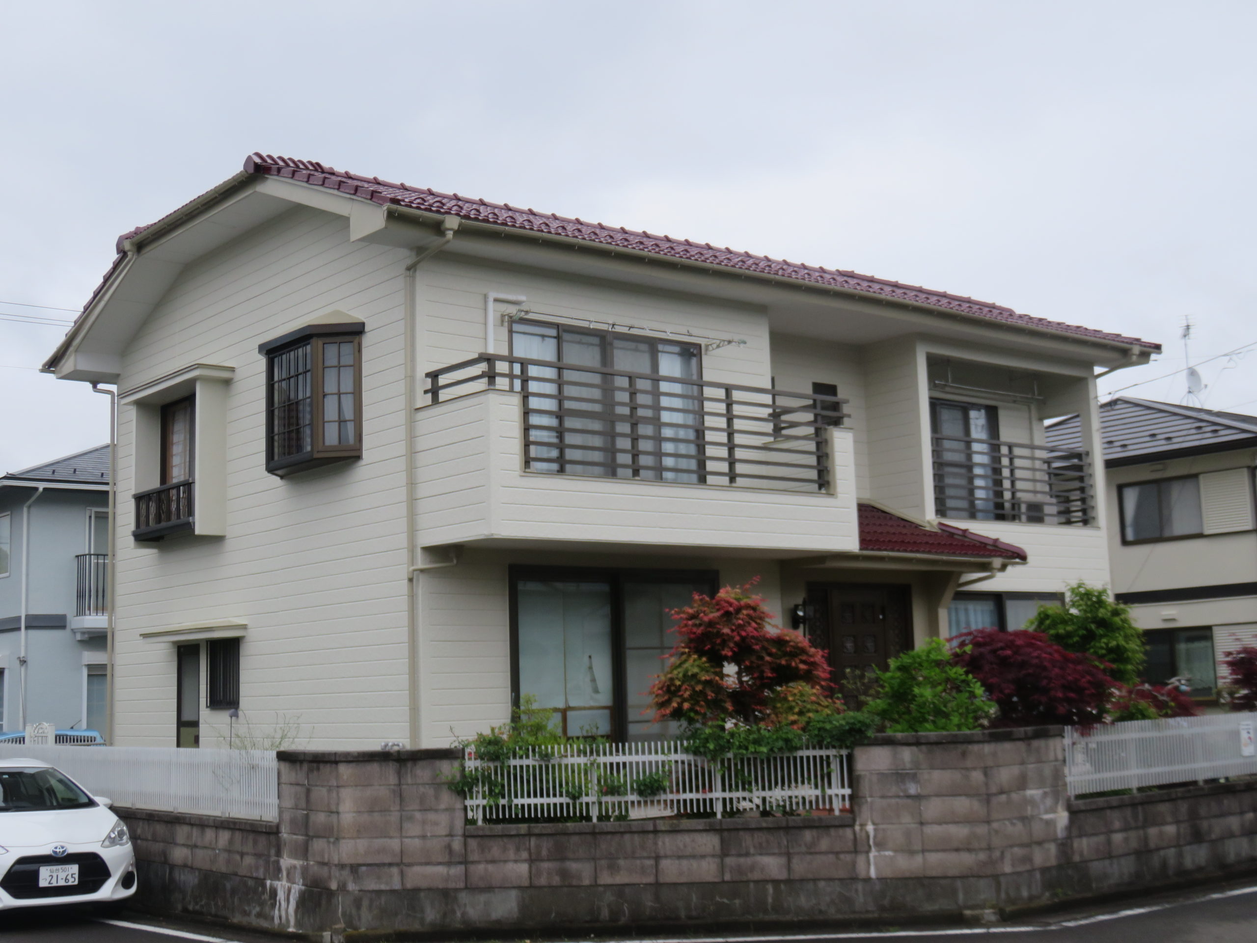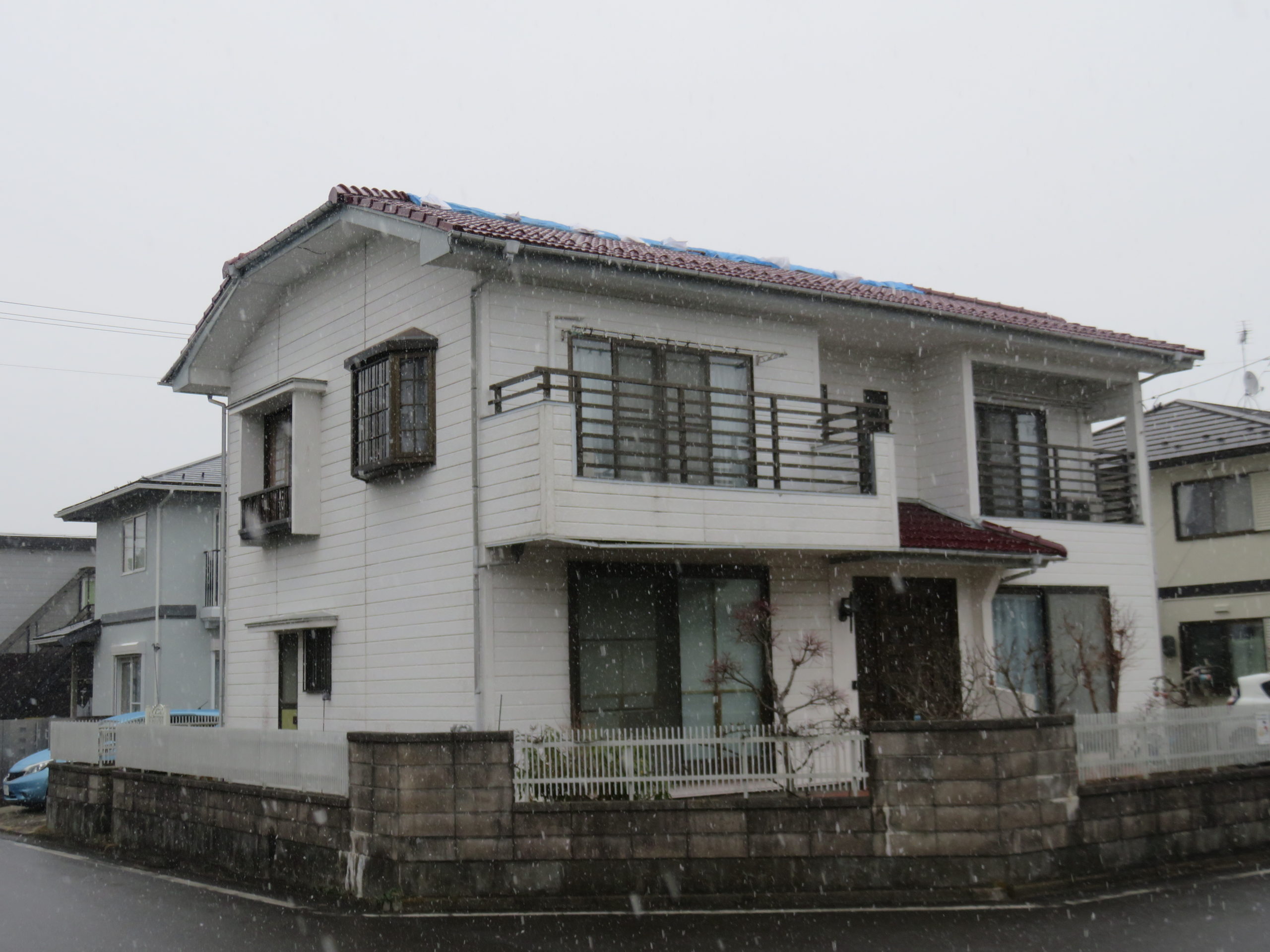 自身による瓦屋根の修繕。経年劣化によるベランダの改修。外壁の塗装。雪害で歪んだ雨樋の交換。