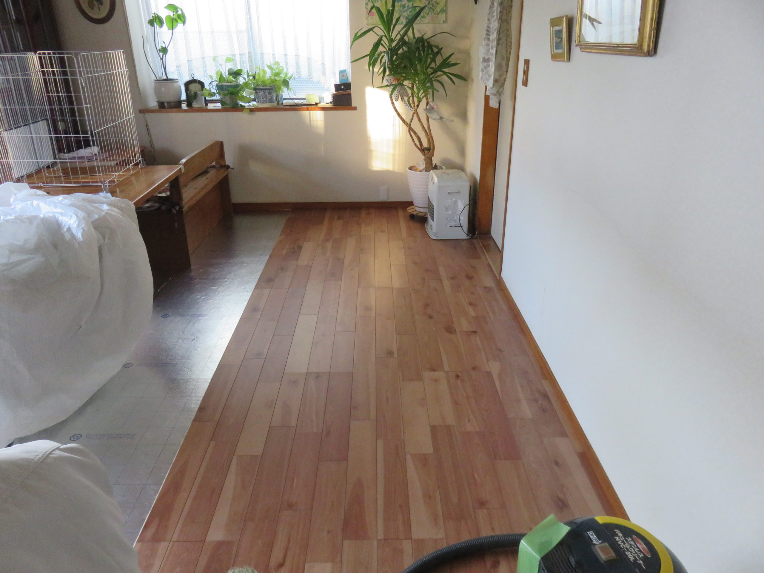 - フローリング施工中
