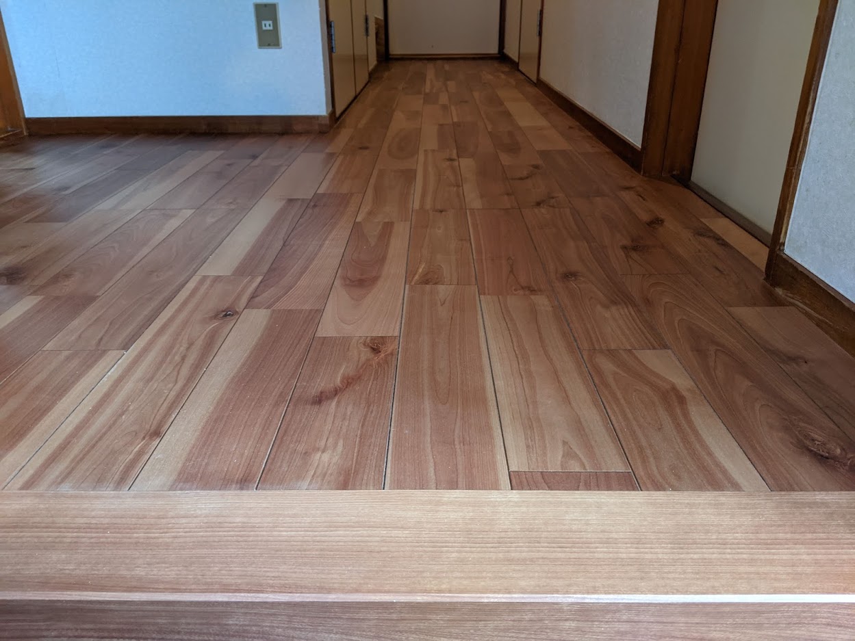 今回はパナソニック ベリティスフロアーW (突き板仕上)2本溝 バーチラスティッククリアー を施工させていただきました。