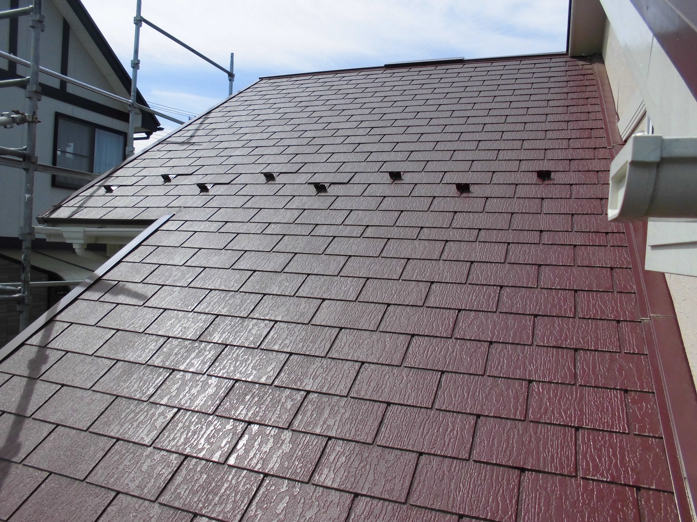分かりづらいですが屋根コロニアルのデザインが変わっています。トタン(板金)屋根、コロニアル屋根等は部分差し替えが出来ません(とりあえず的なことは出来ます)。