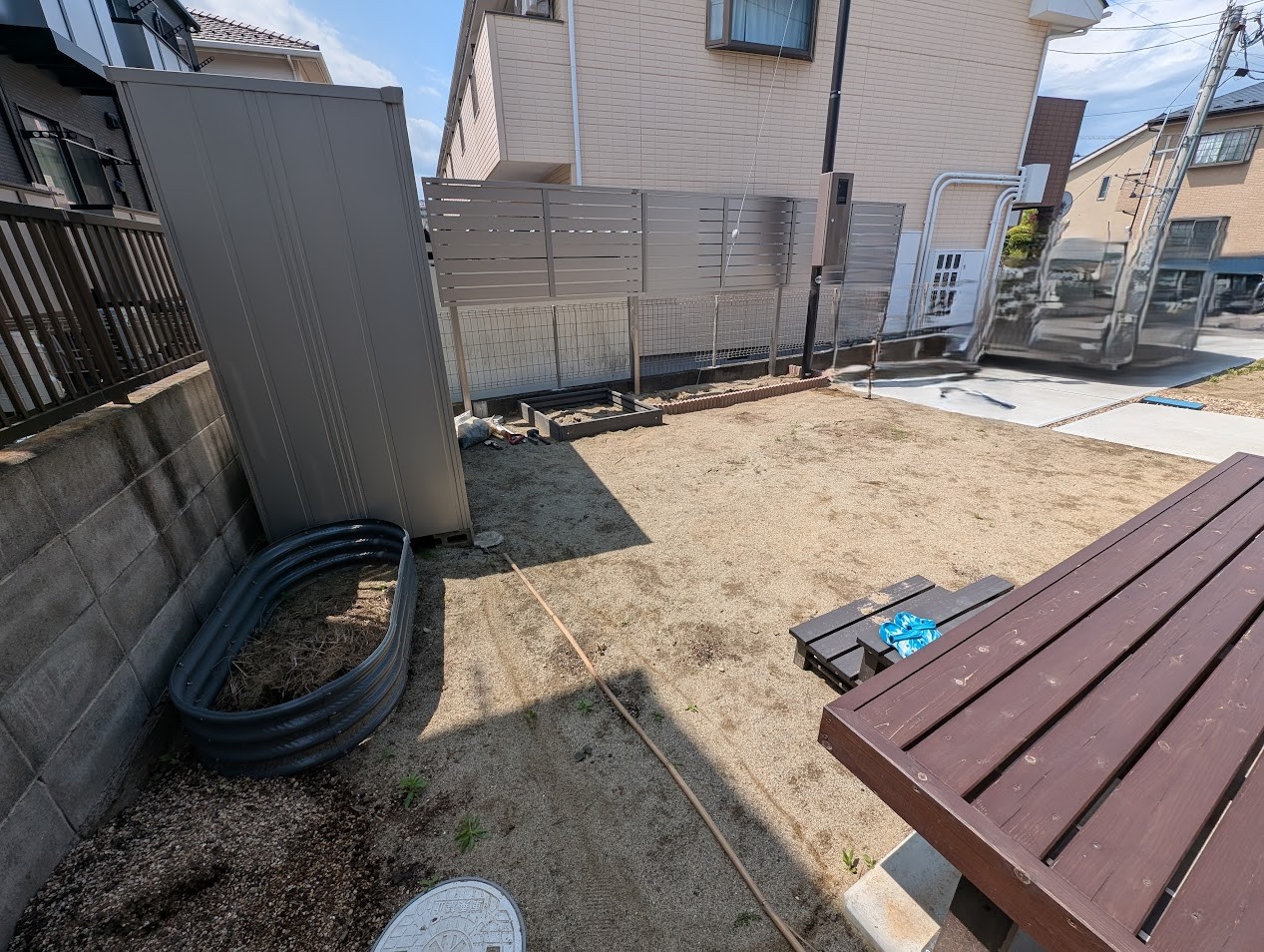 高対候性で殺菌作用のある防草シートですので、お子さんのお庭遊びにも安心です♪
