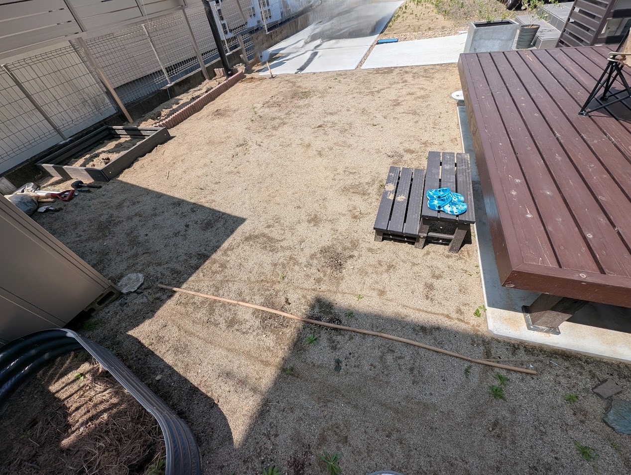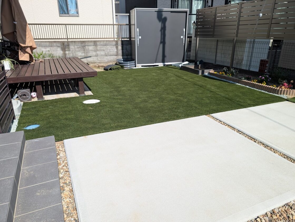 天然芝か人工芝で悩んでいらっしゃいましたので、それぞれの良し悪しを説明させていただいて、小さなお子様がいることからお手入れが不要な人工芝をお選びいただきました。