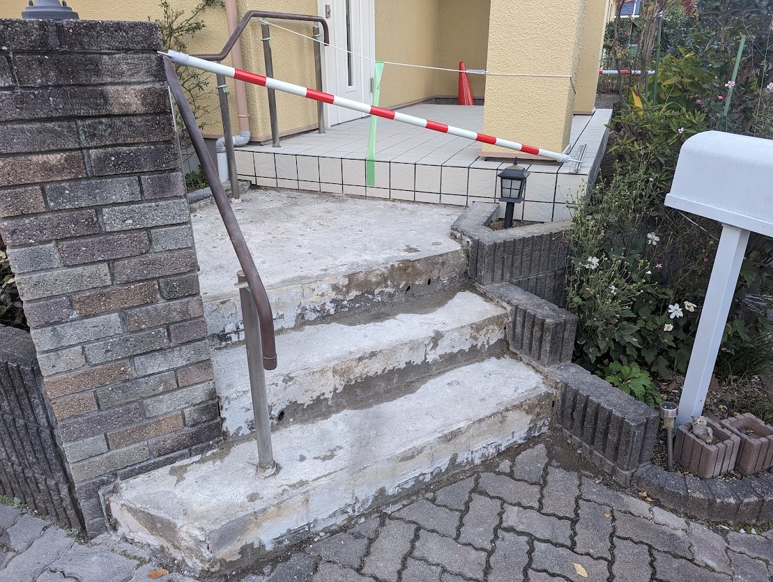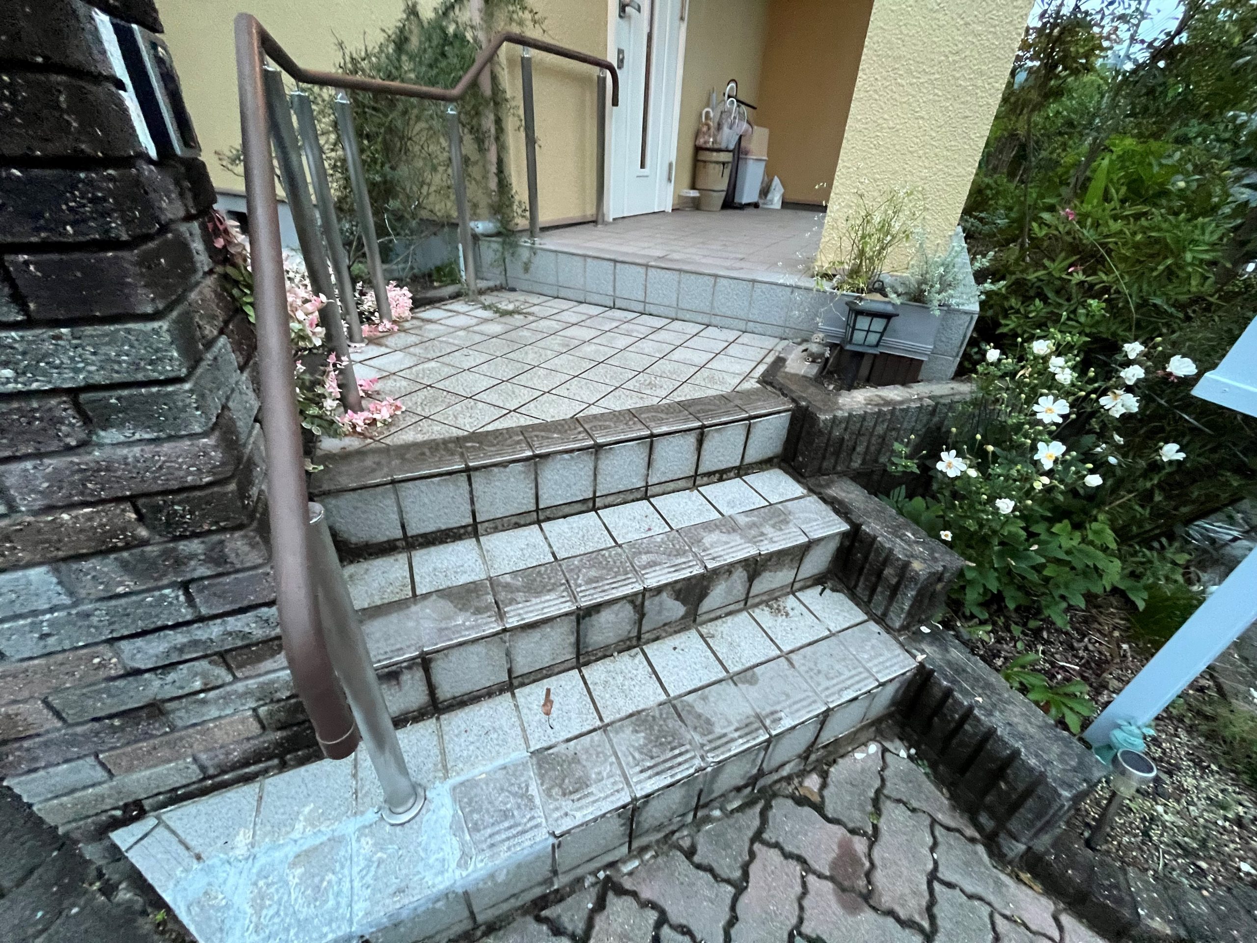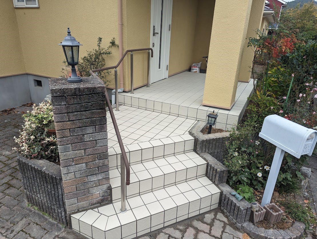 名取市のお得意様、創業時より16年のお付き合いありがとうございます。今回は玄関ポーチ階段のタイルの張替えのご依頼を頂きました。