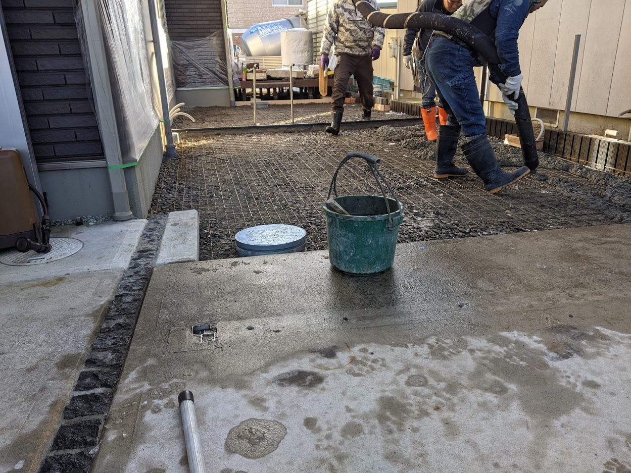 今回はコンクリートの打設を先に行いましたが、通常ですとフェンスの柱を先に埋設させていただいています。