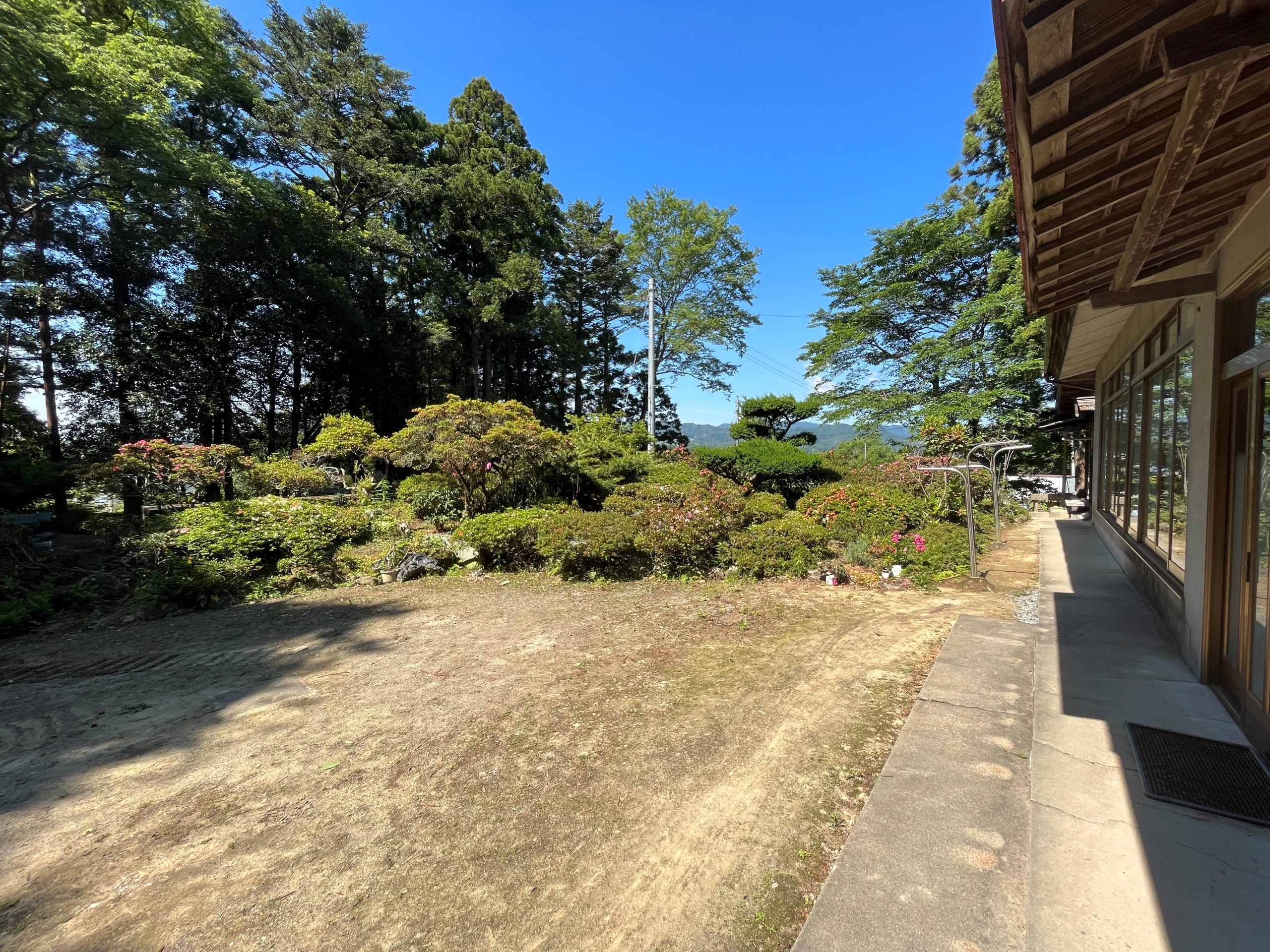 お庭の庭木を撤去して 玄関先と和室の縁側まで、車を寄せられるようにしました。