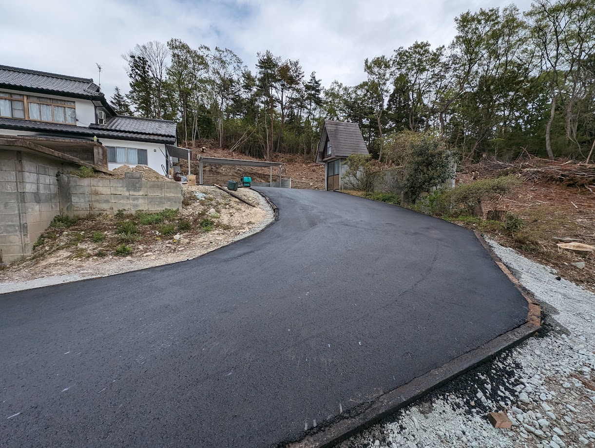 車の乗り上げができなかった敷地入り口を拡張してアスファルトで舗装しました。