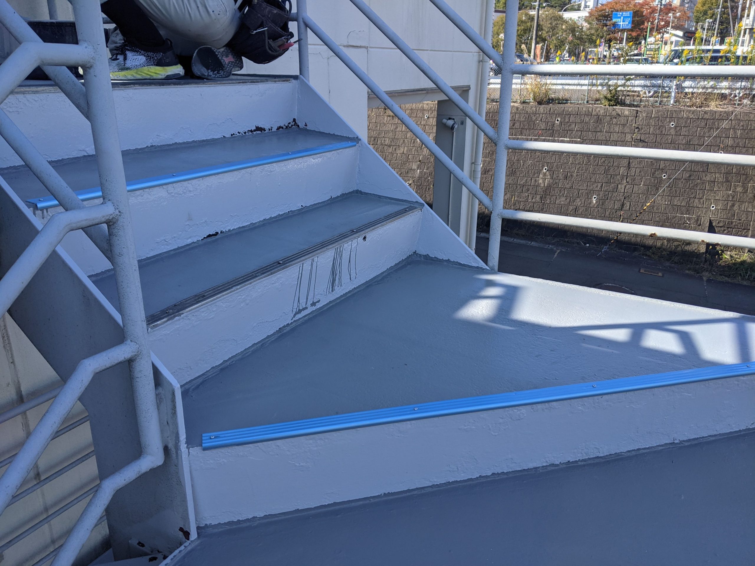 - 踏み面 塗膜防水 施工中