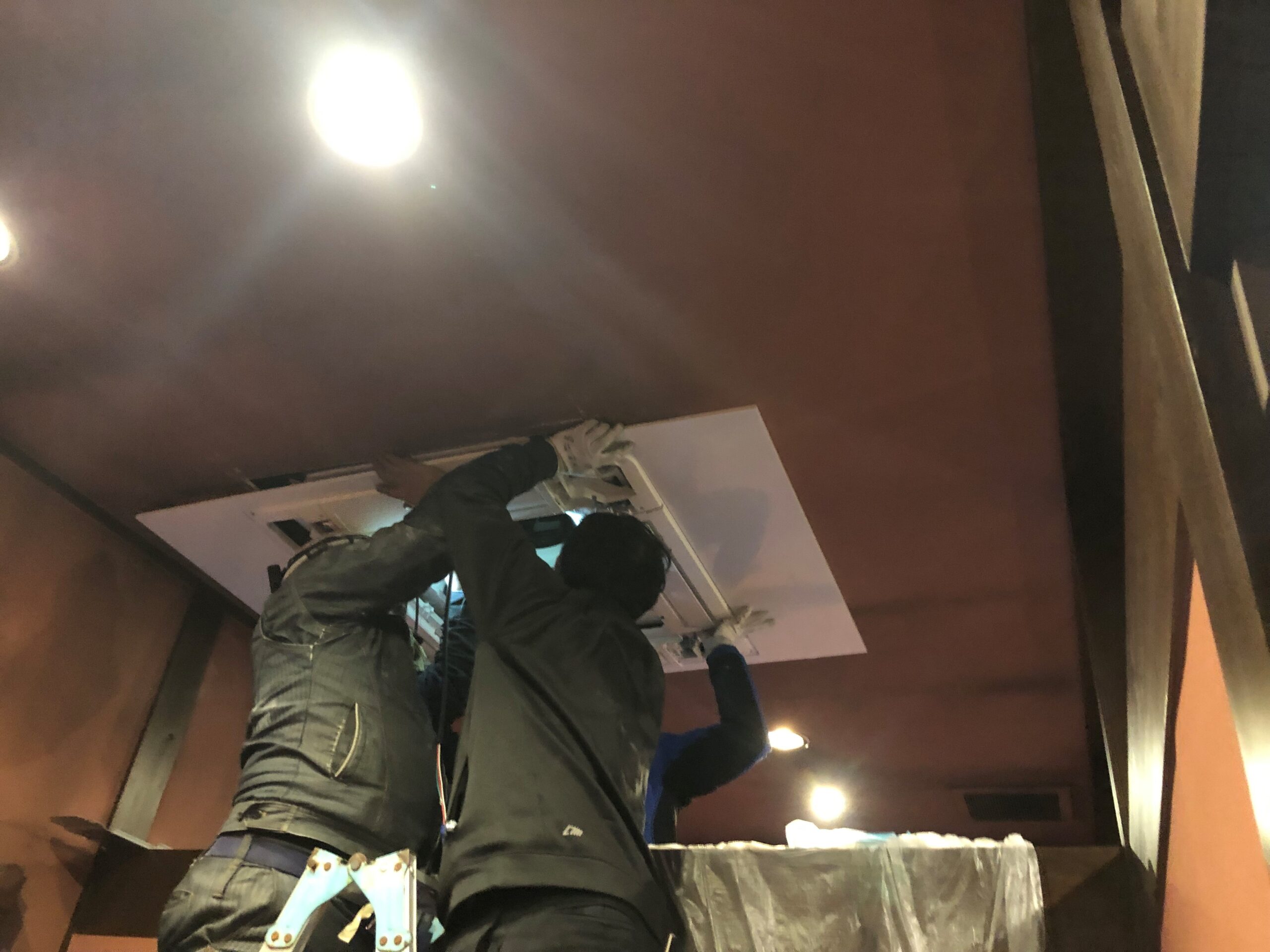 業務用エアコンの取り付けは、一般住宅の家電エアコンの取り付けとは比べ物にならないですね。