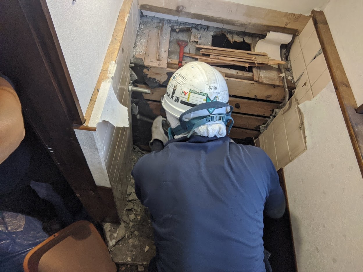 和式から洋式への交換ですのでなかなか苦戦いたします。
