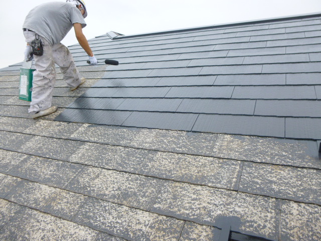 見てわかるように塗り替え前は古い塗膜もなくなり、コロニアル屋根の素地が見えています。雨や汚れに負けないようにしっかり新しい塗膜で保護します。