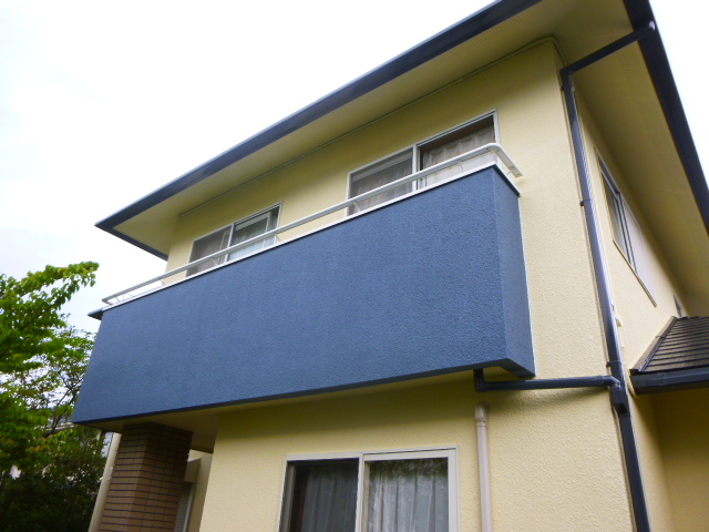 窓交換工事→ベランダ解体工事→塗装工事で完成です。(窓交換工事、ベランダ解体工事に関しましては別の記事でご紹介させていただいています)今回は施工認定店として認められている当社おすすめ塗料、「ナノコンポジットW」にて施工させていただきました。