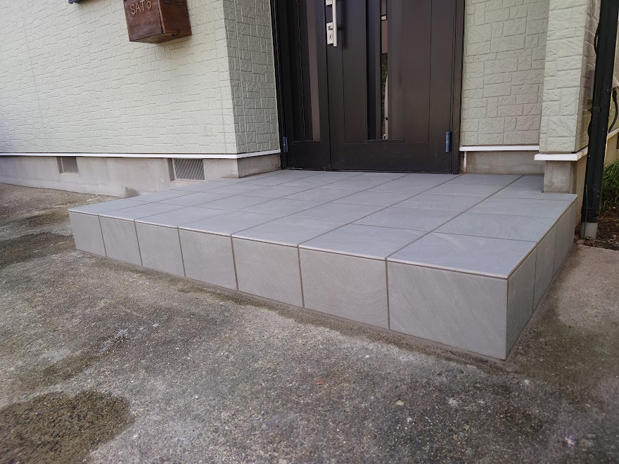 仙台市青葉区より新規のご依頼をいただきました。玄関ポーチのタイルリフォームは一日で完成です。